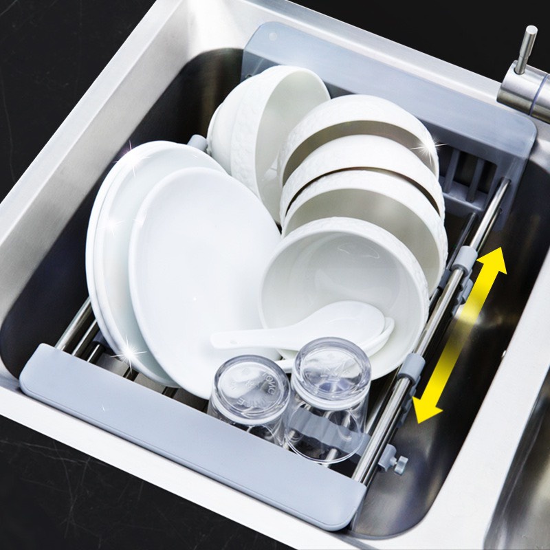 - Rổ kéo rút đa năng dùng để gác chậu rửa chén inox 1 hộc hoặc 2 hộc. Rổ giúp đựng trái cây, chén dĩa khi rửa giúp bạn thao tác thuận tiện hơn